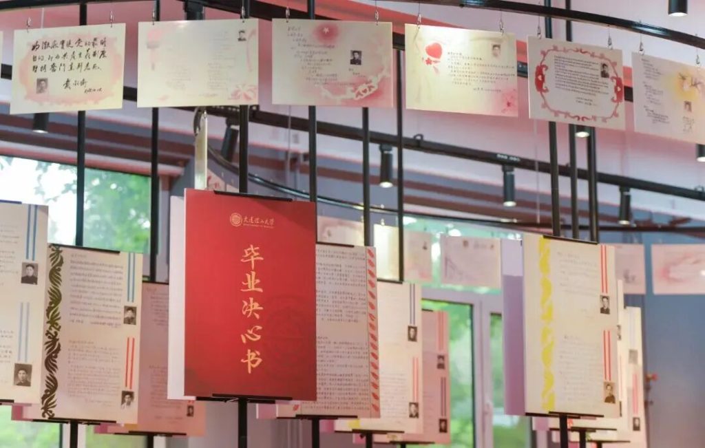 “我要到祖国最需要的地方去!”“在祖国共产主义建设中贡献一切!”展馆中陈列了气体动力学家、中国科学院院士俞鸿儒,轧管工艺与设备专家、中国工程院院士殷国茂等一批学校首届毕业生手写的“毕业决心书”。一封封决心书,表达了老一辈大连理工大学学生为祖国奉献终生的决心,也激励着一批批年轻学子奔赴祖国最需要的地方。