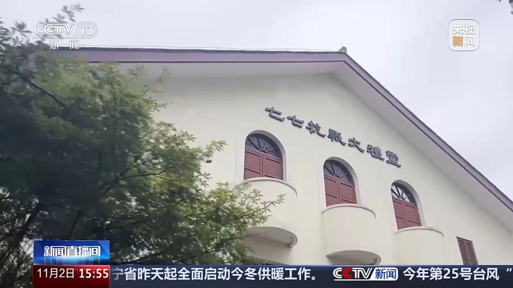 不远处的松林坡上,暖黄色的七七抗战大礼堂同样见证着烽火记忆。1937年底,当时的国立中央大学西迁重庆,借重庆大学之地修建礼堂,纪念七七事变。这里很快成为战时文化高地,郭沫若在此授课,徐悲鸿展出敦煌临摹画作,周恩来登台演讲激励青年。